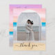 Cartões de agradecimentos De Casamento De Praia Púrpura Púrpura De Blush Chic Blush. Ele apresenta um quadro de trama fotográfico um fundo cor-de-rosa púrpura