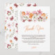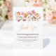 Este cartão de agradecimento para chá de noiva boho elegante com flores silvestres apresenta um arranjo delicado de flores em aquarela em tons suaves de rosa, pêssego e terra. A mensagem sincera expressa gratidão pelo amor e apoio recebidos nesta ocasião especial. Perfeito para agradecer amigos e familiares pela presença e presentes atenciosos