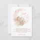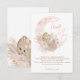 Agradeça aos seus convidados com amor e estilo! Nosso cartão de agradecimento de chá de noiva chic boho rústico com floral de pampas seco sonhador define o tom perfeito apresentando grama de pampas seca delicada, folhas e flor com tons terrosos, cores rosa e bege e um acento de lua de madeira clara com uma tipografia de pincel moderno e elegante.