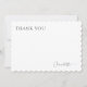 Desses cartões de nota simples dizem 'obrigado' da maneira mais bonita. Na frente, o texto está em uma fonte serif elegante com 'xox' contrastante em azul-pó. O acabamento em recorte escalopado impressionante completa o visual. O verso apresenta um grande xadrez em azul. Personalize com qualquer texto que desejar atualizando o modelo fácil de usar. Cartão de agradecimento perfeito para Chá de Noiva.