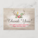 Cartão De Agradecimento Chifre de Veado Rústico Boêmio Floral Madeira Obri