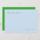 Cartão de Agradecimento Chique Azul Verde Monogram