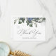 Cartão de agradecimento com flores azuis de inverno, flocos de neve e sempre verde. Personalize com suas informações ou clique em "Clique para personalizar ainda mais" para editar estilos de fonte, tamanho e cores. Ajuste o texto para um chá de noiva ou outro evento.