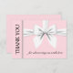 Cartão de Agradecimento da Chuva de Bebê Rosa Elegante Tiffany Azul Turquesa. Mostre sua gratidão aos seus convidados com este elegante cartão de agradecimento plano. O azul aqua perfeito com pérolas e um laço branco combinado com caligrafia moderna e uma tipografia moderna mas clássica dão um acabamento com classe. Seja sofisticado com nossos convites, papelaria, decoração e louças para chuva de bebê tema tiffany!