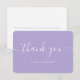Cartão de agradecimento lavanda minimalista e elegante com uma fonte de letra moderna. Personalize facilmente este cartão de agradecimento para o seu casamento, chá de panela, aniversário ou outra ocasião.