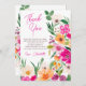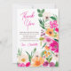 Expresse sua gratidão com este cartão de agradecimento de chá de panela com ilustração de flores de primavera e verão modernas, brilhantes e ousadas, com lindas flores silvestres superdimensionadas e escrita à mão, com uma tipografia de caligrafia moderna com flores neon brilhantes em rosa, laranja, verde e amarelo.