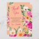 Expresse sua gratidão com esta ilustração elegante e moderna de flores de primavera e verão, brilhantes e ousadas, com lindas flores silvestres superdimensionadas e escrita à mão para cartão de agradecimento de chuva de noiva, com tipografia de caligrafia moderna e flores neon rosa, laranja, verde e amarelo em fundo pêssego
