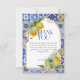 Design inspirado no Mediterrâneo com azulejos em estilo italiano da costa de Amalfi, azul brilhante e amarelo, com limões pintados à aguarela e moldura arqueada com brilho dourado falso.
