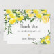 Este cartão de agradecimento elegante apresenta limões brilhantes em aquarela com folhagens e respingos de folha dourada falsa.