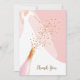 Os bilhetes de agradecimento planos da chuva de noiva apresentam uma noiva em seu vestido e véu em um fundo rosa quartzo rosa com uma garrafa de champanhe, copo e um spray de lantejoulas falsas na frente e sua mensagem de agradecimento no verso. Itens CORRESPONDENTES em nossa loja.