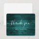 Cartão de agradecimento turquesa rústico com uma madeira rústica e uma fonte de letra moderna. Personalize facilmente este cartão de agradecimento para um casamento, chá de noiva, aniversário ou outra ocasião.