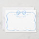 Este design de cartão de agradecimento "Something Blue" é ao mesmo tempo elegante e atual, apresentando uma moldura popular de laço de fita. Este foi pintado à mão por mim em aquarela antes de ser digitalizado. O verso do convite é um simples forro listrado de azul e branco em seersucker.