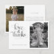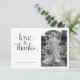 Diga "amor e gratidão" com elegância usando este cartão de agradecimento de 2 fotos. Ele apresenta caligrafia caprichosa e um design moderno boho e é perfeito para chás de panela de noivas ou casais. O estilo preto e branco adiciona charme atemporal, enquanto seu formato digital acessível torna simples e sincero.