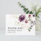 Arranjo elegante de flores vinho burgundy com flores de contorno dourado. Cartão de agradecimento simples para a chuva de presentes da noiva.