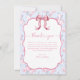 Cartão de Agradecimento Chuva de Presentes para Noiva com Laço Rosa. Shabby Chic, elegante laço rosa em aquarela com rosas delicadas em fundo azul claro. Doce como a noiva. Letreiro em caligrafia com coração.