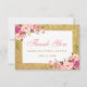 Cartão De Agradecimento Chuva de Presentes Rosa Floral Dourado Brilho Obri