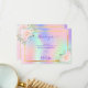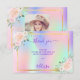 Um cartão de agradecimento feminino e elegante com foto. Um arco-íris, fundo holográfico em rosa, roxo, azul e verde menta, decorado com flores. Personalize e adicione seu bilhete de agradecimento.