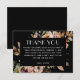 Agradeça seus convidados com este cartão de agradecimento de chá de noiva boho chic com flores rosa em um fundo preto dramático. Perfeito para chás de noiva rústicos, de jardim ou modernos boho. Este design versátil funciona lindamente em todas as estações - desde celebrações de primavera e verão até festas de outono e inverno aconchegantes. Uma maneira elegante de completar seu conjunto de papelaria de chá de noiva e compartilhar gratidão sincera.