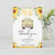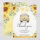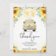 Cartão de agradecimento exclusivo para chuveiro de bebê drive-through gênero neutro com girassóis em aquarela elegantes e um carro vintage chic