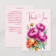Modelo de cartão de agradecimento para chuveiro de noiva elegante com peônias rosa magenta pêssego, cores vibrantes e ousadas para funções coloridas de primavera verão