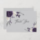 elegante, roxo e flores brancas, com cinzas românticas de prata, no cartões de agradecimentos de fundo da cinza