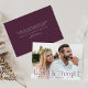 O casamento elegante agradece as cartas que mostram sua foto horizontal de casamento com sangramento de cheio com "Amor e Obrigados" em letras roxas de ameixa. Personalize o cartões de agradecimentos de fotos moderno com seu nome. O verso do cartões de agradecimentos de casamento fotográfico mostra sua mensagem personalizada em letras brancas com um fundo roxo sólido.