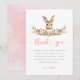 Cartão de agradecimento de primeiro aniversário de coelha de coelho floral rosa.