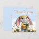 Cartão De Agradecimento Coelho feminino com laço de bolinhas Obrigada