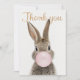 Cartão De Agradecimento Coelho soprando chiclete rosa