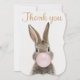 Cartão De Agradecimento Coelho soprando chiclete rosa