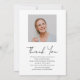 Este cartão de agradecimento com colagem de fotos memorial tem 25 fotos, pode ser para ele ou ela, é perfeito para distribuir em um funeral, velório ou serviço memorial. Os cartões de agradecimento memorial são fáceis de personalizar e os estilos de fonte, tamanho e cor da fonte podem ser alterados clicando no link personalizar mais após a personalização.