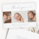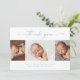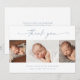 Cartão de agradecimento de colagem de fotos de bebê com letra simples. O verso inclui uma mensagem de agradecimento que você pode personalizar ou remover se preferir escrever seu agradecimento à mão.