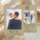 Cartão De Agradecimento Colagem de Fotos de Casamento em Linho Verde Sálvi