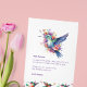 Agradeça aos convidados da sua festa de aniversário com este cartão de agradecimento com um beija-flor aquarela com um buquê floral em um fundo branco.