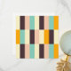 A colorful, geometric pattern with vertical stripes in teal, cream, peach, dark brown, and orange arranged in rows. The design conveys a retro, vibrant feel.