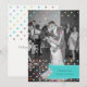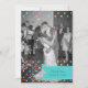 Na moda, cartões de agradecimentos de casamento divertido, estilo plano, com sua foto personalizada cobrindo a frente, com gráficos de confete colorido como bolinhas sobrepondo-se de cima e de baixo. Uma fita azul-turquesa, na parte inferior da frente, tem texto personalizado, junto com a parte inferior da parte de trás da placa. Personalize o texto e a foto para atender às suas necessidades. Os produtos de casamento correspondentes estão disponíveis.