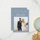 Elegante cartões de agradecimentos de casamento azul empoeirado com sua foto do dia do casamento, "Com amor e Obrigados" em uma mistura de simples tipografia branca moderna e um guião branco-chico com pestanas e seus primeiros nomes e data do casamento unidos por um coração. No verso, personalize seu obrigado que você envia e adicione seus nomes em um script semelhante a assinatura.