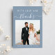 Cartão De Agradecimento Com Amor E Obrigados Foto De Casamento Azul