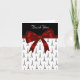 Cartão de agradecimento com fundo preto e branco da Torre Eiffel e lindo laço e arco vermelho. com com