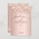 Um fundo dourado rosa, decorado com confetes. Grande letra manuscrita com floreios e o texto: Obrigado. Personalize e adicione sua nota de agradecimento e nome.