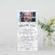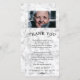 Cartões de agradecimentos de um serviço de memorial com texto preto sobre fundo de mármore em branco e cinza. Adicione uma foto do seu amado.