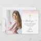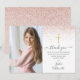 Cartão de agradecimento de primeira comunhão com brilho em rose gold. Personalize com sua foto especial e mensagem de agradecimento em letras elegantes neste design moderno e sofisticado. Criado por Thisisnotme©