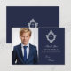 Um cartão de agradecimento de confirmação religiosa vintage em azul marinho e prata recomendado para um menino.