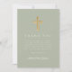 Cartão De Agradecimento Confirmação de Cruz Religiosa Verde Sage Elegante