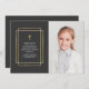 Adicione fotos e sua mensagem de obrigado personalizada. Este design é constituído por um quadro geométrico ouro e uma cruz dourada falsa.