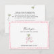 Celebre a noiva com estilo com nossos cartões de agradecimento de chá de panela caprichados! O destaque do design é um copo de martini lindamente desenhado à mão e adornado com um laço rosa suave, simbolizando a mistura de sofisticação e diversão leve.
