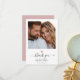 Este cartão de agradecimento de coração de ouro rosa impresso moderno apresenta caligrafia manuscrita ao lado dos seus nomes em tipografia serif elegante sob a sua foto de casamento favorita. Esta é a versão rosa e branca.