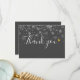 Com elegante tipografia de agradecimento em letra branca, flocos de neve de inverno e um coração dourado elegante em um fundo cinza escuro. Você pode personalizar com sua própria mensagem de agradecimento no verso ou, se preferir, adicionar sua própria mensagem manuscrita eliminando o texto. Uma maneira perfeita de dizer obrigado! Desenhado por Thisisnotme©