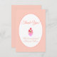 Cartão simples de agradecimento com coração rosa da moda em fundo coral pastel rosa. O coração rosa tem três rosas emergentes. Os textos podem ser personalizados.
