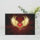 Cartão De Agradecimento Coração Vermelho com Asas Ouros